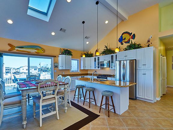Stafford Twp. Margaritaville is here! Escape to your own little paradise. This property has all the makings of an all inclusive resort. Perfectly designed for a no maintenance lifestyle. Kitchen has full stainless steel appliance package, granite counter tops, with center island a nice area for dining inside or dine outside on the upper level tiered fiberglass deck. Master bedroom with fully tiled bath, tiled floors and hardwood floors. Downstairs family room is large enough for all your guests, then take a dip in your 11'x14' heated saltwater POOL, or sit at the built in bar kick and just back and relax. Easy access to Bay by boat or jet ski the dock is 8' x 40' electric skylights, gas fireplace, dual zone heat and A/C, front and back is stamped concrete, outside shower, Better than New!
