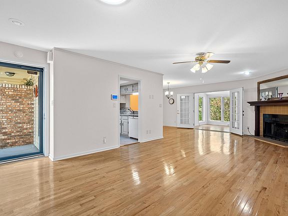 Just the perfect move in one level condo in such a fabulous location at Huntleigh Woods! So convenient to grocery, shopping, medical, library and wonderful dining. So many things to love about this special condo including the large living & dining areas showcasing sparkling hardwood floors, built in display shelves & the whole area anchored with a cozy fireplace. The kitchen is nicely updated with beautiful granite countertops & lots of storage. A very special & unusual detail of this particular condo is the screened in porch with a view of nature...giving you a feeling of peace & privacy. Just off the living area are French doors leading to a sunroom, perfect for your home office, reading & enjoying all the natural light. Two bedrooms & two bathrooms...The Primary Bedroom is quite large, has a door into the sunroom and a large walk in closet. Other features include an oversized laundry room with storage plus your own covered carport just a very few steps from your front door. UPDATES & NEW: New roof 2022, 2 new windows 2024, new LVP in areas, screened porch has new siding & interior wood 2024, new paint thru-out 2024, motion detector lights, el updates. Clubhouse, pool & sauna!!