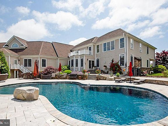 WOW! Welcome to this amazing home located in Mount Gomerie in Fair Hill with approx. 9,000 Sq Ft of living space. This property is situated on almost 2 and a half acres of land, overlooking the community pond, and boasts breathtaking views. From the moment you arrive you will notice the beautiful stone front, large pillars leading to the new front double door with side windows, large circle driveway and professional landscaping. The main level of the home features a two-story foyer, a spacious great room with a gas fireplace and coffered ceiling, Gourmet kitchen features updated appliances including a Wolf double oven, a commercial cooktop and range hood, granite countertops, and a large prep island with an eat up bar and sunny breakfast nook. The main level also features a formal dining room with tray ceilings plus a sunroom that would make a great home office. The upper level of the main home includes an owners suite with upper level deck that overlooks the pond and rear yard, new hardwood flooring, two walk-in closets with custom shelving, private bath complete with a soaking tub, custom tile shower and access to walk-in attic for easy access for additional storage. Three additional spacious bedrooms are located upstairs, one offering an en-suite bath and walk-in closet, and two additional bedrooms connected by a jack and jill bath. The attached guest house is perfect for visitors, in-laws or even working from home and features a living room, a full gourmet kitchen with a breakfast area, 42" cabinets, stainless appliances and granite counters. Upper-level owner's suite with private bath and walk-in closet, plus main level bedroom with another full bath with dual vanity, walk-in closet and separate laundry and powder room on main level. An additional parking area was added to offer two separate parking spaces for the guest house. The guest house has it's own main entrance and is not a typical "in law suite." There is a separate front and rear door and access to the main house through the garage. The backyard is truly an oasis, with travertine tiled heated gunite pool, an outdoor stone and granite kitchen with a built-in grill, travertine tile patio with a stone fireplace, hot tub, professional landscaping offering seasonal blooms and privacy, and aluminum fencing. This beautiful home is an entertainer's dream.