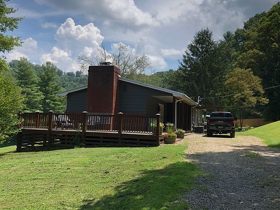 This beautiful updated ranch home is secluded on 1.57 acres, yet only 10 minutes to downtown Asheville and without city taxes! You will enjoy the truly amazing views from the large picture windows in the living & dining room or the large deck overlooking the bubbling brook & all the wildlife nature has to offer. The home features 1527 sq ft with an open concept along with an unfinished basement with potential for more living space and a newly built shed with plenty of room to store all your toys. The living room features a large wood burning fireplace encased with built-in bookshelves, a large window overlooking the front yard, and a double pane door for easy access to the deck and driveway. Enter through the expanded, cedar encased opening into the dining room/kitchen and you will find the front door accessing the rocking chair front porch and a newly installed slider to the covered pergola deck with an attached herb garden and a brick patio perfect for your grill. You will also find a new farmhouse style chandelier in the dining area and new lighting in the kitchen as well. The kitchen features updated cabinets with fresh paint and new hardware, new matching appliances, and a walk-in pantry. The home has 3 bedrooms, one being a master suite, all with ample closet space. 2 full remodeled bathrooms finish out the home. Other updates to the home include new AC unit in 2014, new metal roof in 2018, new windows & slider/double pane doors, new paint inside & out, and new crown molding & baseboards throughout the home. This home is a must-see!