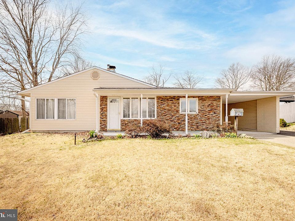 This is a beautifully kept 2 bedroom rancher home in the Goldenridge section of Levittown. This home was originally a three bedroom but was converted into a 2 bedroom and could be easily converted back into a three bedroom if desired. The extra space of the master bedroom is perfect space for an office area, a sitting area or a nursery. There is a large closet with bifold mirrored doors, recessed lights and a large additional closet in this bedroom for storage: There is a full bathroom with a shower/tub and tile flooring in the middle of both bedrooms. There is an additional powder room off the dining room. The kitchen entrance is off the carport area. It is an extra large kitchen with lots of solid wood cabinets, stainless steel appliances (refrigerator, stove, dishwasher and microwave), a matching desk area, recessed lights, formica countertops and laminate radiant flooring. There is a large closet area with a newer washer and dryer in this room. There is a dining room off of the kitchen with access to the front covered porch. There is a stone wall/ fireplace separating the dining room from the living room. There are built in storage cabinets in this room. Enjoy the wood burning fireplace in the spacious living room with a large window for natural light. This house has great outdoor space with a large covered patio outback, a second uncovered patio and a nice partially fenced yard. There is a double driveway and a car port. The house has had the siding updated and a stone front added for additional detail. This house has great curb appeal! There is also a large newer shed in the back yard and a secured attached shed off of the carport which has interior lighting and electric. There is a full attic for additional storage. The owner is leaving the washer, dryer, refrigerator and microwave.