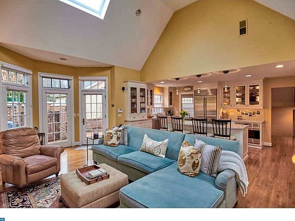 The classic appeal of beautiful proportions and symmetry are immediately evident upon entering the elegant, end unit townhome at 11 Governors Lane. The living room exemplifies these principles, with a beautiful gas fireplace providing the focal point for the room, flanked by a window on either side, all framed by columns on either side of the expansive entry to the room. Across the hallway, the formal dining room has raised panel molding, providing the perfect backdrop for your favorite pieces of furniture. Nobody does open concept kitchens better than Governors Lane, as seen here. The cathedral ceilinged family room is light-filled, thanks to two skylights, windows aplenty and a French door leading to the patio. A granite-topped center island provides counter seating, a cooktop and storage. A subway tile backsplash and glass-front cabinets provide style to spare, while high-end stainless steel appliances provide the functionality. Upstairs, the master bedroom suite has plenty of closet space and an en suite master bath, while the adjoining bedroom is also en suite. On the third floor two additional bedrooms share a large hall bath. The finished basement provides additional living space. Experience the convenience of the townhome lifestyle while enjoying the capaciousness typically afforded by single family homes.