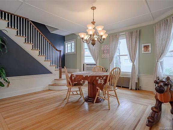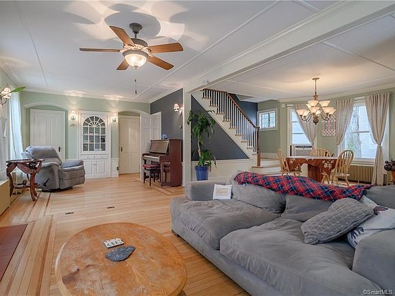 Beautiful Grand Street Victorian! Walk to Bethel shops and restaurants as well as metro north station. You are greeted by a white picket fence highlighting beautiful heirloom roses, just one of many perennial treasures on the property. A recently redone ample front porch with a swing is a wonderful place to sit before entering the home. Inlaid wood floors, medallion trim and built ins add to the charm and character of this 6 bedroom home with city services.