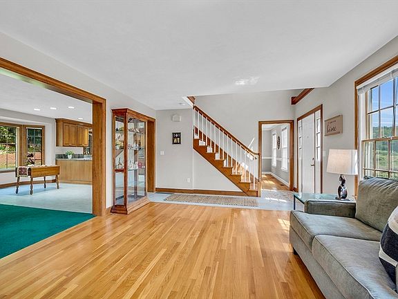 This striking colonial was painstakingly maintained by original owner. Located in the picturesque Gray Farm cul-de-sac, home offers sweeping meadow views from front lawn. Inside, the 2-story entryway and open floor plan provide clear sight lines. DR & LR w/ hardwood floors open to cozy, carpeted FR, with artfully-crafted maple mantle atop gas fireplace. The roomy E-I-K, with maple cabinetry & granite countertops is adjoined by breakfast area, overlooking private yard. 1/2 bath w/ laundry is down the hall, near side entry to 2-car garage. Upstairs, there are 4 good-sized bedrooms replete with gleaming hardwoods and large closets. Vaulted ceilings in the primary and en-suite make already spacious rooms feel grandiose. 2nd full bath upstairs. Full basement & high ceilings offer potential for giant bonus room. Composite deck is the perfect spot to enjoy morning coffee in prof. landscaped yard. Affordability in prime location w/ plenty of time to enroll in school. Must see how well-loved!
