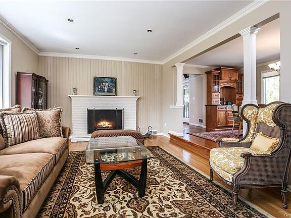 Quiet setting at end of cul-de-sac provides a tranquil backdrop for this immaculate 3-bedroom home that lives like 4, in sought-after neighborhood with Chappaqua schools. Expansive, park-like property with sweeping lawns gives way into bright, spacious interior appointed with oak floors, classic millwork, recessed lighting, oversized windows & easy flow to fabulous back yard with large deck & brick patio. Inviting layout highlighted by entry hall to formal living room with fireplace & step up to formal dining room opening to renovated kitchen with cherry cabinetry, granite counters & stainless steel appliances; and generous family room with tray ceiling, fireplace, glass doors & three exposures. 3 carpeted bedrooms on 2nd level includes master suite with 2 double closets & marble master bath. Additional living spaces include finished attic; walk-out garden level with office & mudroom; & lower level with large finished rec room. Convenient location close to bus, park, train & shops.