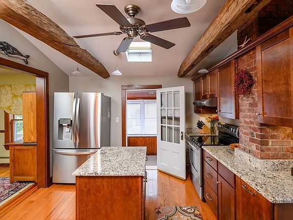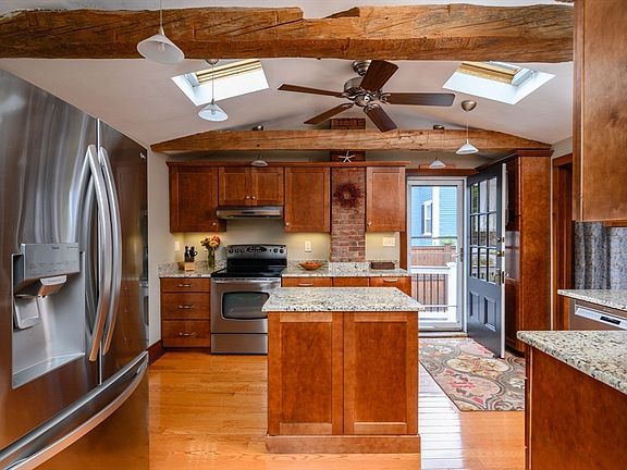 - Features: Skylight, Beamed Ceilings, Flooring - Hardwood, Kitchen Island, Stainless Steel Appliances