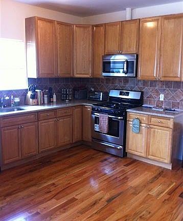 This spacious, gorgeous and updated 2 bedroom apartment comes with ALL Major Appliances, features hardwood floors throughout. Has two full bathrooms, washer/dryer in unit, and Central A/C. Non-smoking unit and No pets. Located on private block, tree lined street. But also close enough to ALL Transportation for your NYC Connections. (Owner will pay 1/2 month realtor fee)