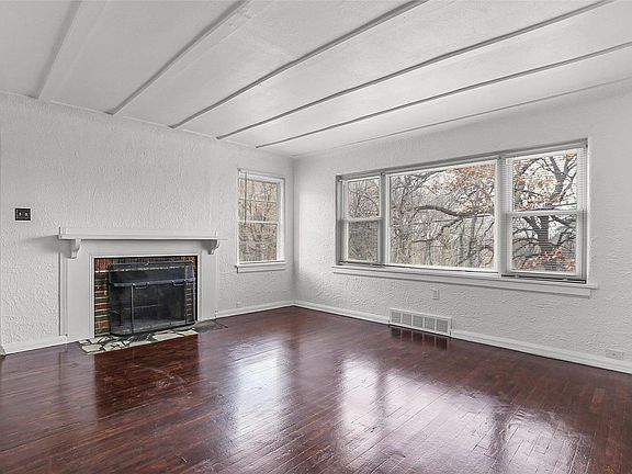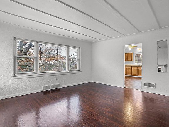 Cute as a button and move in ready at an affordable price. Great location close for a quick commute to St. Louis. Situated on a double lot that backs to woods for privacy. Large living room features hardwood floors and cozy fireplace perfect for chilly nights. The large window allows the natural light to flow in and beams on the ceiling add to the charm of the home. Eat in kitchen with durable no maintenance flooring. Hardwood floors and ceiling fans in both bedrooms. Full basement is immaculate and would be very easy to finish for additional living space. Shed in back for extra storage and plenty of space for off street parking. Call your favorite agent for a showing today!
