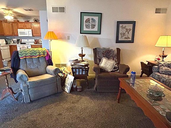Here is a great unit in the Shiloh Ridge Condo Community in West York. There is more space and closets/storage than you typically think in a condo of this size. The open floor plan features a living room, dining area and spacious kitchen with ample countertops and cabinets (the seller is leaving all of the appliances and the 2 barstools at the breakfast bar/peninsula). The hall full bath also has the laundry (the seller has the laundry doors, she just uses the valances to allow more space). The 2 bedrooms are in the back of the unit. The first has the access to the rear deck - which also has a retractable awning. The other bedroom has its own private bathroom - recently renovated walk-in shower. There is a covered front porch and a rear wood deck. Recent improvements include: new roof, new furnace and new carpet in the bedrooms.