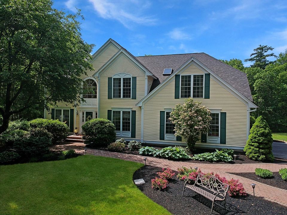 Nestled at the end of a quiet, tree-lined cul-de-sac on 2.53 acres, this beautiful home offers a private oasis complete with pool. The impressive two-story foyer welcomes you into a space that seamlessly blends elegance and comfort. The large eat-in kitchen features gorgeous cabinetry and a slider that opens to a generous deck, perfect for outdoor dining and entertaining. Adjacent to the kitchen is a spacious family room with vaulted ceilings, a large fireplace and an open concept design. The first floor also includes an office, ideal for remote work or study. Upstairs, a catwalk overlooks a family room, and leads to additional bedrooms. The finished lower level has a full bath and bar offering versatile space for recreations and relaxation, with a convenient walk-out to a covered patio. Outside, the property features a large shed and fire pit, enhancing the outdoor living experience. The design for both comfort and style, this home is a perfect sanctuary for modern living. No showings until open house Saturday, June 8 from 11-2, Sunday, June 9 from 11-1.