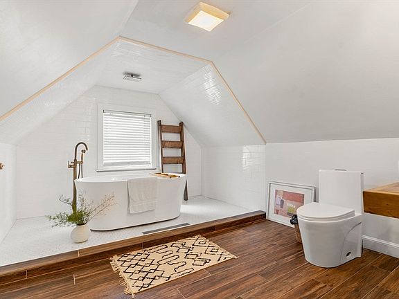 Elegant designer residence offering exceptional space and refined style. The entire third floor is dedicated to a luxurious primary suite, complete with custom built-in dressers and a spa-like open bathroom featuring a soaking tub. The second level hosts three spacious bedrooms and a beautifully appointed full bath, while the first floor showcases a gourmet eat-in kitchen flowing seamlessly into sophisticated dining and living areas. Throughout the home, gleaming hardwood floors, designer lighting, central air and heat, and a brand-new hot water heater add comfort and modern convenience to this timeless property.