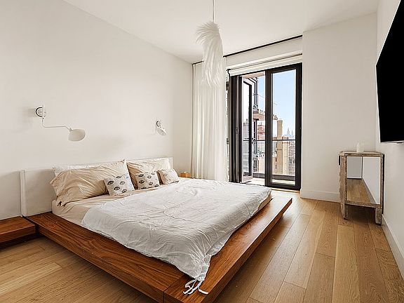 Eleven Hancock sets a new standard for condominium living in Harlem. This breathtaking two bedroom, two bath Penthouse home boasts a 21' living room and four outdoor spaces, including a 470 square foot private rooftop cabana. Enter into a foyer that leads to the open concept kitchen overlooking a corner living room with beautiful city views from southern exposures. The living room has two terraces perfect for relaxing. The kitchen is Italian crafted by Cesar with handsome millwork, Calacatta quartz counters and backsplash and Miele appliance suite. Down a hallway you will find the 2nd bedroom which has access to one of the terraces with a bathroom off the hall. The bathroom consists of a classic white and warm gray palette with matte black Kohler fixtures. The primary has its own terrace, large closets and an en-suite 4 fixture bathroom. It includes a glorious rain shower-head, walls lined in large format Calacatta tile and natural stone floor in a herringbone pattern.