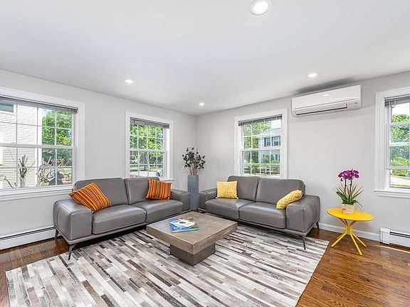 This bright and sunny home features an open floor plan and boasts 4 bedrooms and 3.5 bathrooms. The first level welcomes you with a spacious living room, dining room, and a large eat-in kitchen that has wide sliders leading to the deck and a beautiful backyard. On the second level, you'll find an expansive primary bedroom with an en suite bathroom, along with two additional bedrooms. The lower level offers a versatile space that can be used as a game or exercise room, a bedroom, and a full bathroom. Conveniently located, this lovely home is seated on a Cul-de-sac, just steps away from Whole Foods, Newton Highland, Newton Center T stops, and the picturesque Cold Spring Park. Recent updates include a new kitchen and first-floor bathroom- 2014, replacement of six windows and renovation of the second-floor bathroom- 2018, new central air -2019.