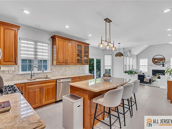 East Brunswick 4-bedroom plus office, 2.5-bath stunner with a walk-out basement, cathedral ceilings, and a beautifully updated interior. The main level was designed for entertaining, with a spacious family room featuring cathedral ceilings, a gas fireplace, and plenty of natural light. It flows seamlessly into the heart of the home a generous kitchen with gleaming granite countertops, a massive center island, and an abundance of cabinet space. There's even a dedicated breakfast nook for casual dining, and a formal dining room just off the kitchen, perfect for hosting dinner parties. The 1st floor also features a private home office tucked near the front of the home for privacy. The front living room, currently used as a playroom, offers flexible space for any lifestyle. A dedicated laundry room is also conveniently located on this level. Upstairs, the oversized primary suite feels like its own wing two finished walk-in closets, a large sitting area (which can easily function as a nursery or fifth bedroom), and a spa-like bath with soaking tub, stall shower, dual vanities, and private water closet. Down the hall are three more well-sized bedrooms, all with finished closets, and a full hall bath. The walk-out basement is the true showpiece bright, open, and designed more like a third level than a typical basement. A custom accent wall with electric fireplace creates the perfect spot for movie nights or game day, with plenty of room left for recreation and storage. Additional highlights include: new roof (2024), new HVAC for the first floor (2023), hot water heater (2023), smart thermostat, Ring cameras at multiple points, and MyQ-enabled garage access. Fresh tile in the kitchen, new carpet in the basement, and light-filtering blinds throughout the home add to the polished, move-in-ready feel. Set in one of East Brunswick's most convenient locations with top-rated schools, easy access to Rutgers, major hospitals, public transportation, and an impressive mix of international dining just minutes away. Showings begin June 7