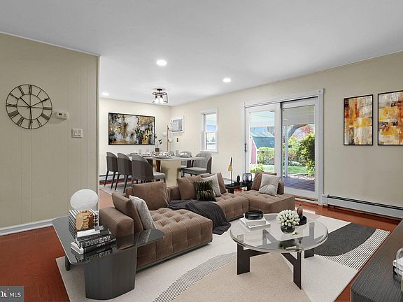 With a well-manicured yard and charming curb appeal 11 Hawk Rd is ready to welcome you Home! This well maintained four-bedroom home greets you inside with beautiful and luminous engineered hardwood flooring and a bright ambiance. The open floor plan takes you to the spacious living room area which allows for varied seating arrangements and flows effortlessly into the dining room area. The recently remodeled (2023) kitchen enjoys the contrast of crisp white cabinetry, stainless steel appliances with black glass cooktop and built-in microwave, a tiled backsplash and quartz countertops. Two bedrooms on this level are both nicely sized and give you versatility in utilizing one or both as a playroom or an office. A full bath with a tub shower will complete the first floor. The primary and secondary bedrooms are upstairs, each bedroom is sizable with vinyl wood flooring and windows to bring in the natural light. A second full bath completes this second level. Outdoor living will be enjoyed on a ground level covered deck that overlooks the yard and includes a shed for storage. Schedule your appointment today to see this move-in ready Levittown gem that could be your next HOME!