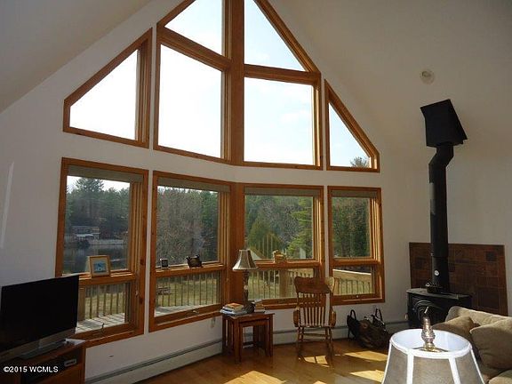 Beautiful Contemporary home w/ 100 feet of direct waterfront on the pristine upper Hudson River! This spacious home features a living room w/ a wood stove, vaulted ceiling, large windows looking out to the water. Good size kitchen w/ breakfast bar & dining area w/doors that lead out a large deck overlooking the water. The main level also has 2 nice size bedrooms, full bath, entry way & laundry room. Upstairs you will find the master bedroom & bath.