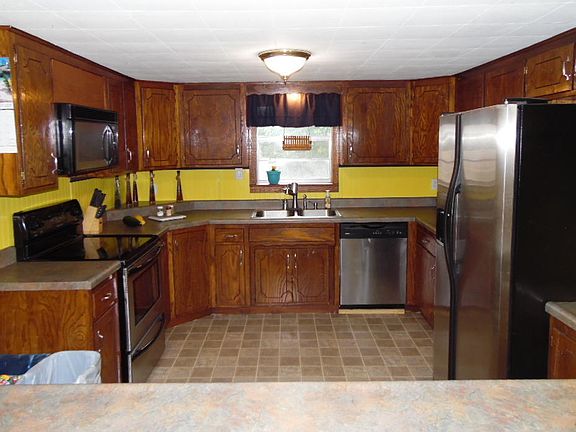 Just enough room for a few horses or cattle. Large Brick three bedroom, two bath home with full unfinished walkout basement. Large living room with wood burning fireplace, kitchen with island and stainless steel appliances, large pantry. Large covered front porch and fenced in yard. 32x36 outbuilding with electric, older 50x36 barn and large pond. All of this is on 6.6 acres m/l off of blacktop road frontage.