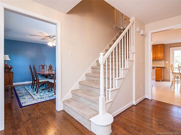 Decorate to your heart's content in this 2-story Colonial home in Simsbury. Features include 5 bedrooms, 2.5 bathrooms, traditional dining room, living room with hardwood floors, comfortable family room with stone wood burning fireplace, partially-finished walk-out basement, first-floor laundry, bright kitchen, appliances included, workshop, a sprinkler system, trails. $349,900. Please call for more information.