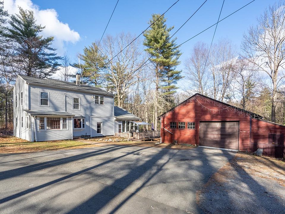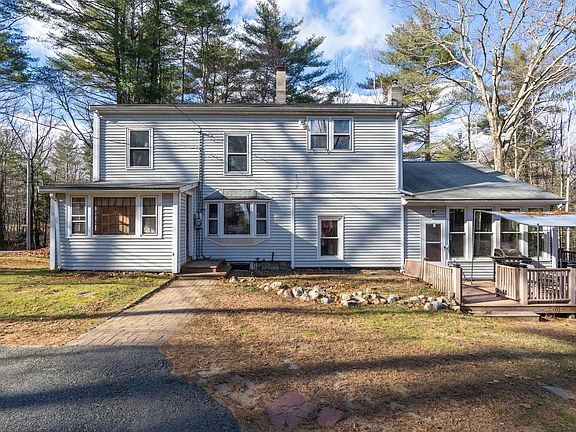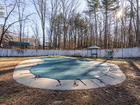 MOTIVATED SELLERS! Charming colonial on a large 3 acre wooded lot featuring a custom built in-ground heated gunite pool and hot tub. This home boasts a primary on-suit bedroom on the main level as well as the second floor. With an additional bedroom and bonus room/office. A four season, heated sun-room looks over the private backyard. There's a 1 car, gas heat available, garage to park a vehicle or equipment during the cold winter months. Greenie park and baseball field are across the street and Newton's town beach is a quick 4 minute drive away. This home also makes a great COMMUTER LOCATION, being very close to 495 and 95, 10 minutes to Massachusetts border. Agent related to seller.