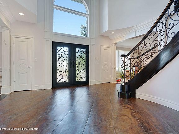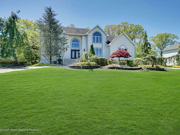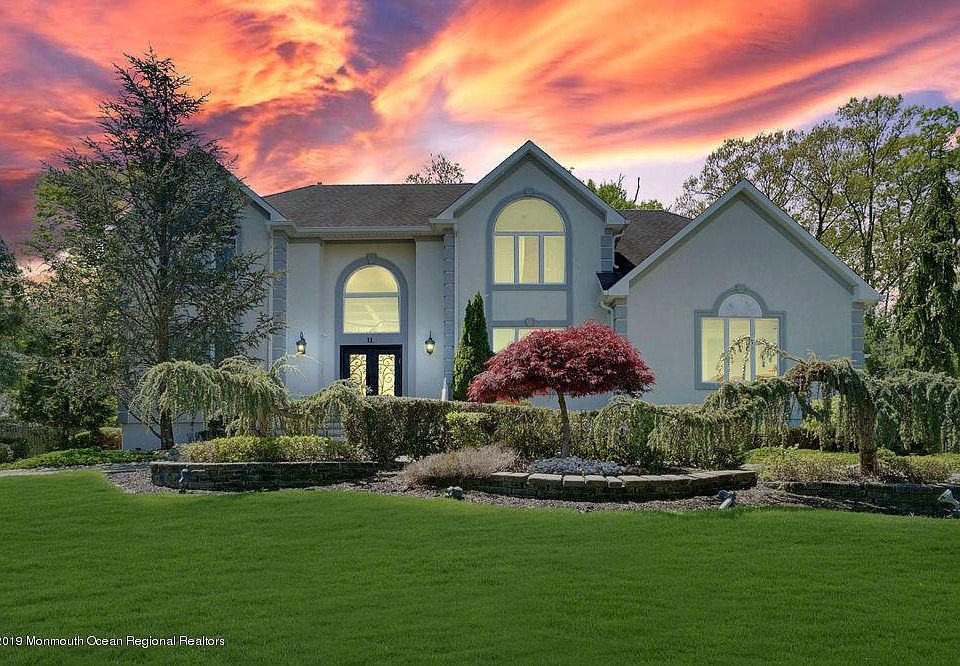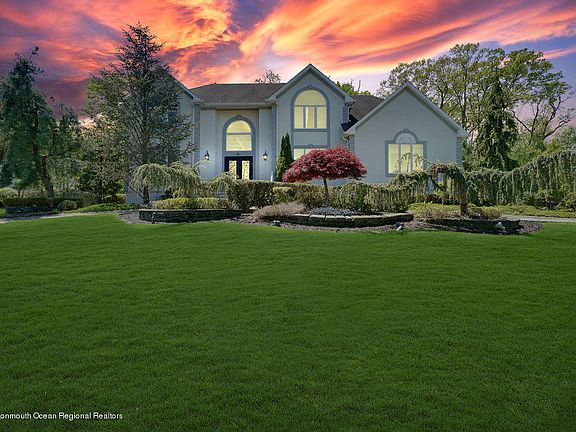 Truly magnificent custom colonial in the highly sought after Crine Woods development of Morganville. Owners spared no expense in turning this into a work of art with features like matte style porcelain floors with radiant heat on the main level and dark finished hwd floors throughout the home. Custom detailed trim work in each and every room with the kitchen having only the finest hand cut stones flown in from other parts of the world and a euro-line kitchen with only the highest end appliances like Wolff and Miele, Full bedroom and bath on the first floor as well. Upstairs 4 generously sized bedrooms with one princess suite and vaulted ceilings in the kids bedrooms and custom California closets done by euroline as well in each room. Master bedroom is spectacular with an abundance of