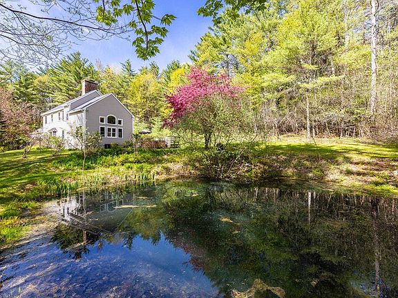Beautifully sited colonial in one of Lebanon's nicest neighborhoods. Surrounded by three acres of natural beauty, yet minutes to Upper Valley amenities, this 3 bedroom, 3 bathroom home is such a treasure! Terrific open concept living area with updated eat-in kitchen, and living room with cathedral ceiling, amazing windows and brick fireplace. Primary en suite bedroom, two additional bedrooms and full bathroom upstairs. Finished basement with family room and office. Large deck overlooking pond, custom stone firepit, and blooming trees. Showings start Friday by appointment, Open House Saturday 10-1 and Sunday 1-3.