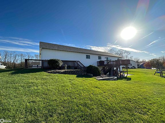 Spacious & well maintained 5 bedroom, 3 bathroom Albia home for sale! Built in 2001 with over 3,200 square feet, this beautiful home is located on a quiet cul-de-sac in Parkview Estates and has tons of great features! The main floor offers open concept living and features vaulted ceilings, an inviting living area, spacious kitchen/dining with a large island, huge pantry, lots of cabinet space, and access to the multi-level deck. The main floor also has 2 big bedrooms and a full bathroom just off the living area, a large primary suite with a 3/4 bathroom and walk in closet, and a great laundry/mud room. Travel downstairs to the full, walk out basement and discover a secondary living/kitchen/dining area, 2 more bedrooms, another full bathroom, utility room, storage space, and while you’re there, enjoy the in-floor heat! The exterior of this home has tons to offer with the yard, deck and covered patio, and you’ll also enjoy the 32’x24’ garage with 2 overhead doors. This Albia home really is a must-see!