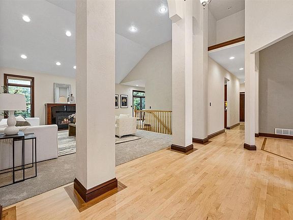 Nestled on a 1/3 acre lot across from Calder Park this home welcomes you with the convenience of main floor living in grand style. The large front and side yards offer opportunities for play or landscaping while keeping the house neatly set back from the street. A vaulted ceiling in the living room and high ceilings throughout make the home feel extravagant. The kitchen has solid cherry cabinetry and granite countertops. A formal dining room with cherry inlaid in the maple flooring provides space for entertaining. The primary suite with an expansive sitting area and separate whirlpool tub and tiled shower provide a refreshing retreat. Two large bedrooms with a connecting bathroom and a laundry room round out the main floor. In the LL there are two separate walkouts from the 3 rec rooms, 2 large BRs, a bath and so much storage space. Many recent upgrades in 2023 including a new roof, refinished hardwood floors, all new carpet & LVP, paint refreshed throughout, and most appliances are newer. The geothermal system was replaced in 2014 so you can enjoy efficient temperature control throughout the year with lower utility bills.