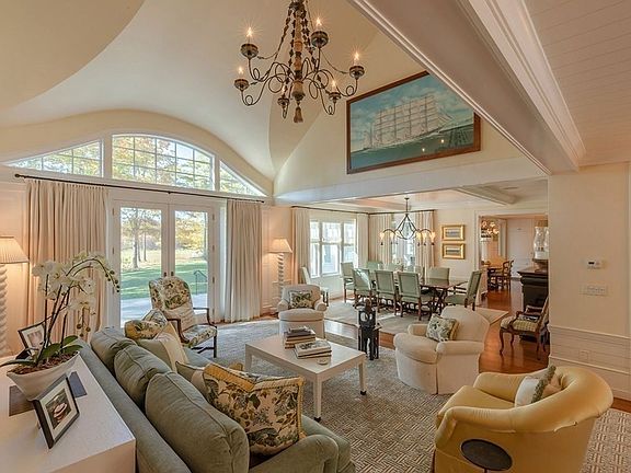 Gracious living in this exquisite 6,680 sf custom home at the Bay Club. Designed w thoughtful intention, distinctive coastal architecture, and the highest quality construction, this spacious residence boasts plenty of room for family & guests, and all the modern amenities to live comfortably & entertain. Soaring ceilings, a sprawling open concept great room w gas fireplace, gourmet kitchen w enormous center island & eat-in dining area, light filled sun-room overlooking the pool, cabana & golf course, first floor master w office, dressing area & master bath and private TV room. The second floor opens to the great room below and leads to three additional ensuite bedrooms, a multipurpose bedroom or office, an in-law/aupair suite, & a third floor office. The three bay garage is accessed from the mudroom, off of which you will find powder room, laundry, pantry and back stairs. This is a one of a kind offering for luxury living on a beautifully landscaped oversized lot. Live work and play!