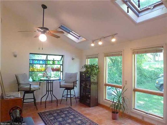 You will be astounded! Plain jane on the outside,but inside....Spacious rooms,incl.Solarium w.Skylites and windows galore,living rm w. Fireplace,kitchen w. Breakfast bar flows into dining area w.French doors to large deck.Walk to private lake assoc.Beach.