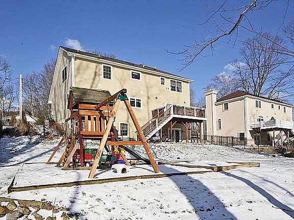 Better than new 6 yr young colonial, loaded with upgrades, granite,hardwood,central vac.,stainless appliance,DCS double ovens,DCS 6 burner gas stove, wine refrigerator,Bosch dishwaher, gas masonryfireplace living room,in ceiling speakers dining room,lvrm, deck area,2 story foyer, custom moldings, walk out basement, 3 full baths,skylight in master bath, heated jetted tub, stall shower, custom closets and double sinks, 2 zoned heating and air conditioning. Paver patio and large deck, fenced in backyard. Don't miss this beautiful home