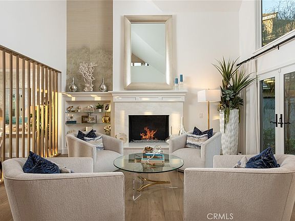 Welcome to 11 Hillsborough, an exceptionally remodeled 4 bedroom/4 Bath home in the highly sought after gated community of Harbor Hill. As you walk through the private gated courtyard and then through the well-appointed Dutch door, you are greeted by soaring ceilings and a plethora of expansive windows and natural light. The white oak wood floors lead you throughout the home emphasizing the bright and open floorplan. The elegantly remodeled kitchen features top of the line appliances, an ice maker, a detailed wood slatted ceiling, and plenty of cabinetry and countertop space. Enjoy the breakfast nook overlooking the serene backyard or sit at the breakfast bar. The family room offers an indoor-outdoor feel featuring bifold doors that open to an outside sitting area. The dining room is adorned by a stunning chandelier and opens to the backyard. The living room features elevated ceilings, a lovely built-in and an exquisite marble framed fireplace. Also downstairs you will find a bedroom with a walk in closet and ensuite bathroom. As you ascend the staircase, there is yet another gorgeous chandelier, one of many throughout the house. The oversized primary bedroom is light and bright with picturesque views and a beautifully detailed fireplace. The primary bathroom is thoughtfully designed with a free-standing tub, double sinks, a separate makeup vanity, a heated towel rack, and a unique accent wall in the shower. Upstairs you will also find a Jr suite with a walk-in closet and ensuite bathroom, another secondary bedroom with a balcony, and an office with a balcony. The backyard is an entertainers dream with a built in BBQ, pool, spa, and plenty of space for outdoor dining or lounging. The luxurious remodel is felt throughout with no detail spared. Easy access to beaches, shopping, restaurants and more.