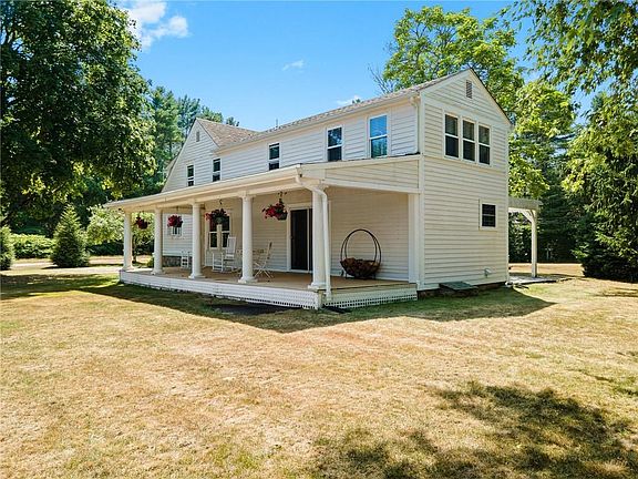 Tucked away on Hillsdale Road is this stunning circa 1800 built home that exudes charm, character, and period details with modern updates. You will be pleasantly welcomed by an expansive covered porch overlooking the large yard, a perfect spot for your morning coffee or relaxing with a good book after dinner. Inside you will find beautiful hardwood floors throughout the over 2300 square feet of living space. The first level boasts a large living room with a gorgeous stone fireplace that has a wood stove insert, gleaming hardwood floors and built in shelves. The kitchen has been updated with granite counters and stainless steel appliances and flows nicely into the dining room. Also on the first level is a large foyer with glass French Doors leading to the front porch and an entry door leading to the pergola covered stone patio. Finishing off the first floor is a full bathroom with conveniently located washer & dryer. The second level features a spacious primary bedroom, 3 additional bedrooms, a full bathroom, and a relaxing sitting area located at the top of the stairs. With over an acre of land there is plenty of room for all your outdoor activities. 11 Hillsdale Road is the charming, updated Antique Home you have been waiting for.
