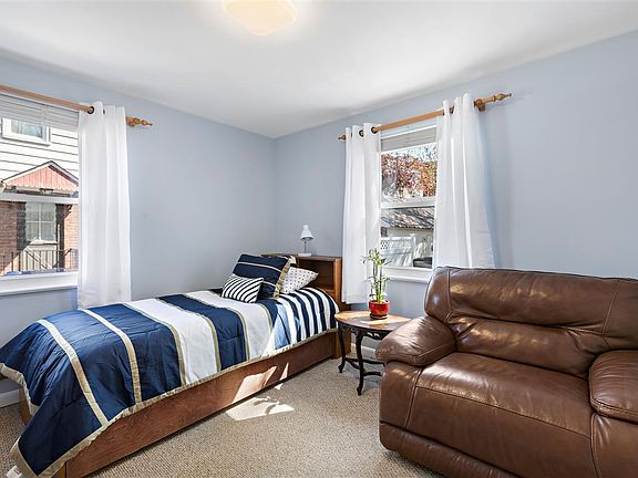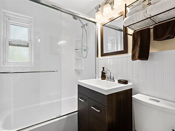 Beautifully updated Cape Cod is your turn-key home, ready to move right in on a quiet street! Bright & airy home freshly painted with lots of natural light. Open entryway w/closet, living and dining rooms greet you as you enter - one bedroom, updated full bath and kitchen with SS appliances featured on the 1st floor. Upstairs master bedroom with vaulted ceilings and fan boasts walk-in closet. Two more large bedrooms and a modern bath round out the 2nd floor. Attic space for extra storage! Half-finished basement family room w/overhead lighting and laundry room with pantry storage and exercise room. Sliding glass doors in the kitchen lead to your low-maintenance trex deck and into your private backyard oasis with patio and above-ground pool. Detached garage w/workshop offers 1-car parking. Lush green front lawn complete with in-ground sprinklers. NYC Express Bus at the corner!