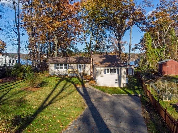 This inviting ranch is set on a gorgeous lot just one street back from Lake Wickaboag! Enjoy seasonal water views from the privacy of the new back deck.. or take a short walk and launch your boat for a day on the fully-recreational lake! This home is thoughtfully refurbished, featuring new flooring and a fresh coat of paint throughout. Have peace of mind this winter with the new high-efficiency propane furnace and the added ambiance of the stone fireplace in the living room! The main-level primary bedroom offers ample comfort, while the dedicated laundry room adds to the convenience of daily living. The lower level features a versatile bonus room, awaiting your creative touch. With close proximity to local shopping, dining and major routes, this home offers serenity and accessibility. Plus, the allure of lake life is just a stone's throw away!