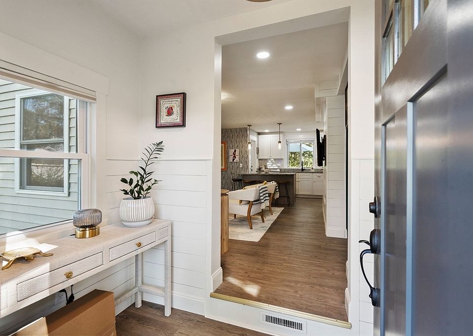 Discover a rare opportunity to own a designer-renovated home that blends sophisticated style with effortless living. This residence offers an airy open plan, soaring vaulted ceilings, and curated finishes that rival new construction. The chef’s kitchen features granite counters, stainless appliances, and sleek cabinetry—ideal for entertaining or intimate nights in.The primary suite is a private sanctuary, complete with dramatic ceilings and a spa-inspired bath. A second bedroom, additional full bath, and versatile bonus space provide flexibility for guests, work, or relaxation.Set against tranquil water views, the home offers privacy and calm, while just minutes to major routes and the commuter rail into Boston. Around the corner, enjoy farm-to-table living with a working farm stand and a local artisan coffee roaster.This is not just a home—it’s a refined lifestyle of modern convenience and timeless charm. Rarely does a property of this caliber come to market. Quick close possible.