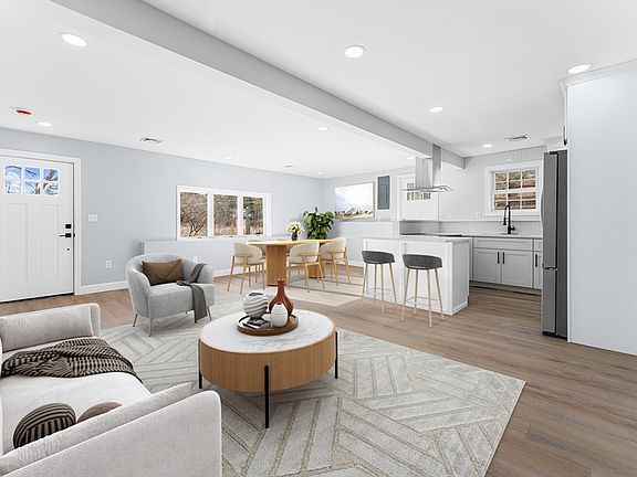 Wake up to stunning views of Glover Mill Pond, where you have private access for year-round enjoyment—from ice skating in winter to serene summer evenings. Fully updated ranch with all quartz counters, stainless steel appliances & a beautiful tile backsplash in the kitchen, this home boasts modern luxury. Tiled showers, recessed lighting & a primary suite that's a private retreat at one end of the house, complete with its own bath and large walk-in closet, promise your own personal sanctuary for some privacy. Just minutes from shopping and highways yet hidden away on a tranquil dead-end street with only two other homes on the entire road.This gem won’t last long - don't miss out!