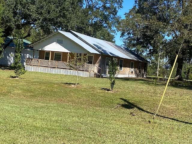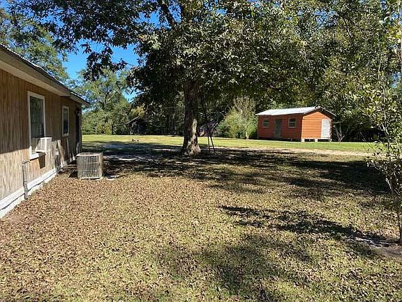 House has 2 good-sized bedrooms and one very nice bathroom with tub and walk-in shower. The kitchen has lots of cabinets and open concept to dining and family room. Washer and dryer hook-ups. New hot water heater, Central heat with window units for air (just needs new inside ac unit for central) Added on to the house is a large area which could be made into another bedroom, bath den, Playroom or whatever you may need. For now it is storage area. The lot is level around the house and drops off slightly at the bottom on the 3.39 acres. There is some water in the bottom area where pond would be easy to build.