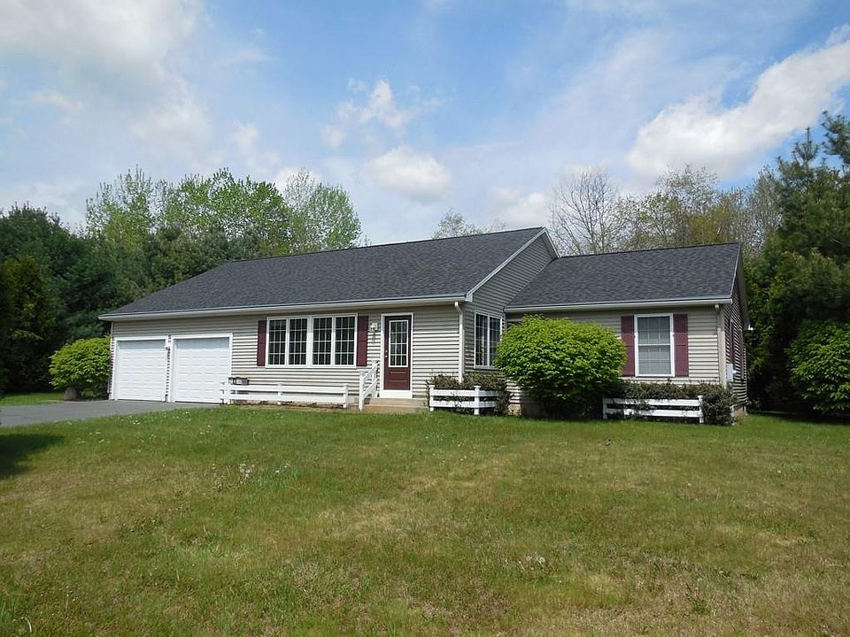 Spacious Ranch located in a beautiful neighborhood of attractive homes. The 1 acre lot offers a picturesque setting with privacy and southern exposure. Enter through a 10x26 sun room with an abundance of natural light. The kitchen opens to a huge dining area with a combined length of 40'. Generous sized bedrooms, both with large closets. Full basement with plenty of space for hobbies and storage. It appears that a gas line was run to the house from the street, as well piping in the basement for future use. Roof is approx. 3 years old (APO).