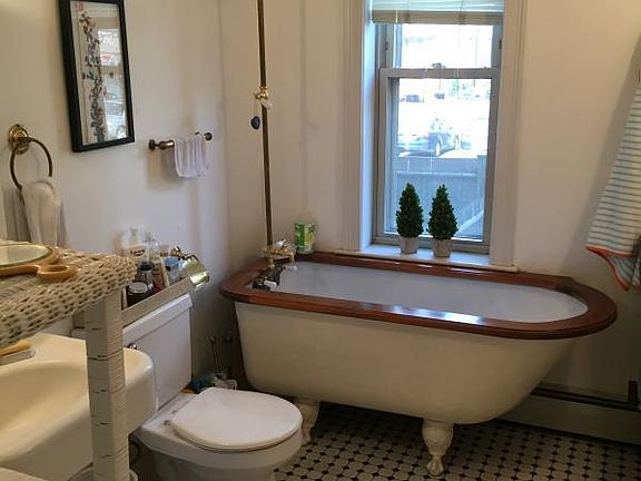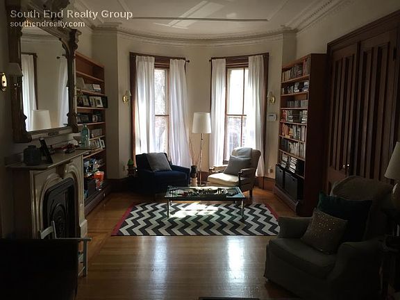 Best location for this two bedroom duplex with 2.5 baths! Two large levels of space, hardwood floors throughout, separate dining area and amazing original detail. Parlor level living room features soaring ceilings, tall windows and original marble mantle and built-ins. One bedroom with en suite bath.Laundry and common yard . **PARKING SPOT INCLUDED.** Good closet space. Enter at Parlor level or under stoop. Gas heat & hot water extra.Easy walk to Back Bay station or even downtown.