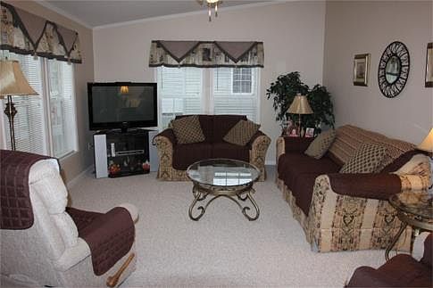 Nice country Park! Lots of natural sunlight with open concept and cathedral ceilings. Well maintained 2006 with master suite with full bath and walk-in closet. Lots of kitchen cabinets and island bar and breakfast nook. Large living room, wood floors and 1 car garage. Furnishings are negotiable