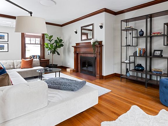 Bellevue Hill: Tucked on a beautiful tree-lined Street, this handsome circa 1930 residence is graced with architectural detail & thoughtfully updated for both casual living & entertaining. The interior is enhanced with rich gum-wood detailing, crown moldings, & hardwood floors throughout. The main level features an expansive front-to-back living room with fireplace, opening to a family room w/views of the yard. The cook's kitchen, with custom cabinetry, stainless steel appliances, granite counters, & a breakfast bar, offers flexible space for dining & relaxing w/access to the lovely dining room with a coffered ceiling, as well as the mudroom & landscaped yard w/patio & garage. A half bath completes this level. The second floor offers 4 corner bedrooms including a lovely primary bedroom w/walk-in closet, & an updated family bath w/radiant floors. Additional features include a walk-up attic, A/C, & replacement windows. Easy access to restaurants, shops, commuter rail, & Arnold Arboretum