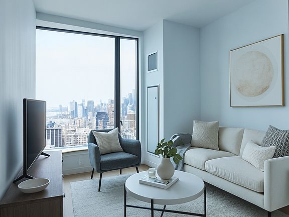 Experience elevated living in this spectacular split two-bedroom, two-and-a-half-bath residence at Brooklyn's iconic 11 Hoyt. Perched on a high floor, Apartment 38H offers sweeping western views across the Brooklyn cityscape and stunning sunsets framed by 10-foot ceilings and two expansive bay window seats phenomenal for reading, relaxing, or simply taking in the skyline.