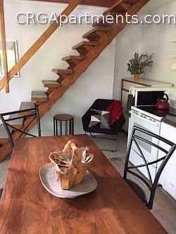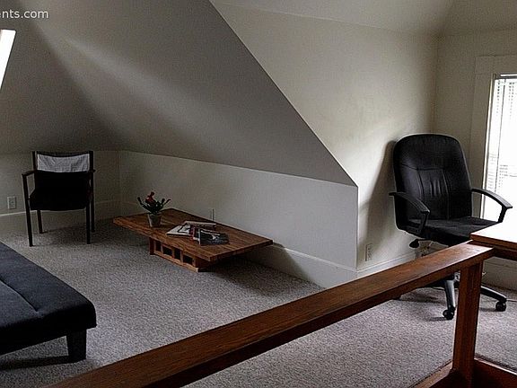 Sunny, One-of-a-kind, One-bedroom Apartment on Two Floors on beautiful residential street in prestigious Avon Hill area. Private entrance through lovely backyard. Walk to Harvard Square, Porter Square, Huron Village and T. Unique Architectural Appeal. Enter into kitchen/sitting room. Hanging oak stairway to second-floor: bedroom with built-in queen-size platform bed and built-in cabinets on either side of bed; slope-ceiling living room with skylight; built in desk in area around landing; very large dressing room area with built-in closets and extra charm --a built in vanity dressing table and a hidden pull out ironing board Special Features: Newly refurbished - new kitchen appliances and counter, new plank floor in part of kitchen and bath, the rest is new wall to wall gray burber carpet. Easy on street parking. Much light and air (windows on 4 sides. Photos show some window and porch views as well as yard that is available for tenant use.) Covered space for bike. Stall shower, no bathtub. Many built-ins. Kitchen Furnishings on the way. Rental Details: Available NOW. Utilities (heat, hot water, electricity) avg $135 month. Cable ready for internet. Minimal rental is for 10 months. Higher rent for leases less than a year (Minimal 10 months). $2600/mo for 10 months. $2400 for 11 months. Lease of 12 months is $2300