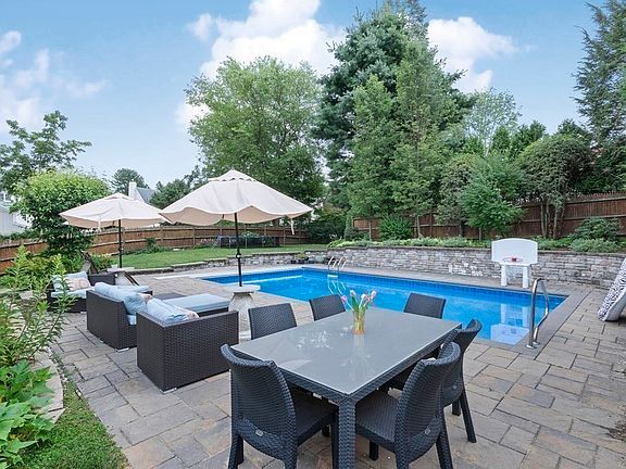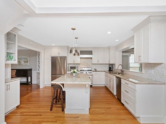 Situated on a tree lined street in one of Newton's most sought-after locations. This classic New England center entrance colonial with wonderful outdoor space boasts many tasteful updates while keeping with the original charm and character. This gracious home has incredible sight lines and flows seamlessly. The renovated kitchen with island and granite countertops opens nicely to the dining room, home office and the fabulous den/sunroom with multiple sliding glass doors to the magnificent grounds including the patio and inviting heated swimming pool that creates the perfect oasis in your back yard! The second and third level offers five bedrooms including the primary suite with a renovated bathroom, fireplace and walk- in closet. Laundry and a 2nd home office/craft room. The finished lower level includes a family room w/stone fireplace, wet bar, laundry, 2nd mudroom and a full bathroom, this space would work well for a home gym! Easy commute to Boston & Cambridge.