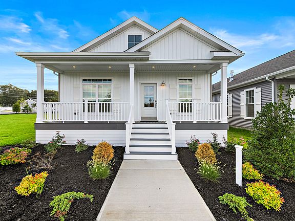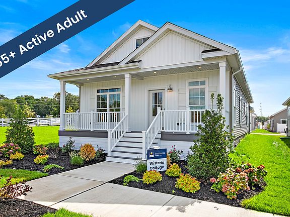 Brand New Spec Home ready for immediate occupancy at Cottages at Compass Point, an active adult 55+ community located in Barnegat, NJ - 2 bedroom, 2 full bath with family room. This Wisteria cottage features a full front porch, spacious one-car garage, additional parking pad, concrete patio with privacy fence along with various upgrades inside. Your inner chef will fall in love with the abundance of 42" Glacier white cabinets with 3 piece layered crown molding, 9" single bowl stainless steel farmhouse sink, Snowden Cambria Quartz and Peppercorn center island in the gourmet kitchen of this home. Glass cabinet doors, pull out trays, hidden trash/recycling cans, cutlery tray and a pots and pans drawer are just some of the hidden gems you'll need to see to appreciate. There is even a built-in desk with filing and storage cabinets. The Whirlpool stainless steel appliance package includes a side-by-side refrigerator with in-the-door ice and water, gas cooktop, self-clean wall oven with built-in convection microwave & dishwasher. A decorative tray ceiling adds an understated beauty to the formal living room while the Rave linear fireplace will keep you warm on a cool night. With transom windows in every room, you can enjoy natural light even while the blinds are closed. You'll see vinyl floors throughout as well as ceramic tile in both bathrooms. The spacious primary bedroom highlights a walk-in closet as well as bath with double sink vanity, walk-in tub with seat and Harve