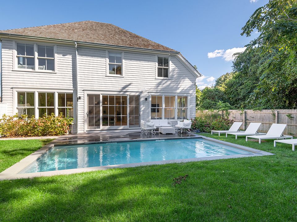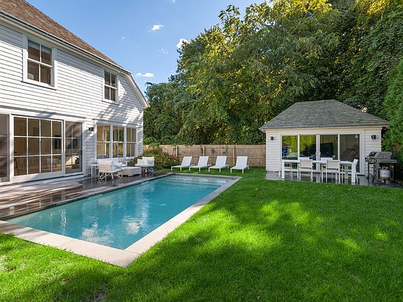 Rental Registration #: 0000 All the simple, summer pleasures found here. Excellent location, bike to town, dinner, and shopping while staying at this sunlit 5 bedroom home. First floor has two sitting areas, plus dining room, plus breakfast bar. The wall is lined with French doors displaying the in-ground pool, lounge chairs, and pool house. First floor bedroom and bathroom. Upstairs has three bedrooms, the master with a sunlit bathroom, and two guest rooms.The lower level is fully outfitted with a living area, a gym, a bedroom and bathroom. This bedroom also leads to the pool area with bright egress. Spend your summer here with convenience, access to all your favorite places, close proximity to the beach, in a bright, new, sunlit home.