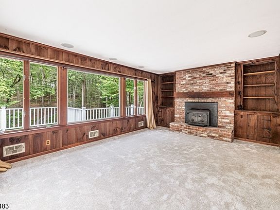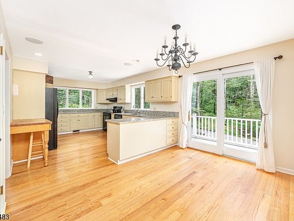 Experience the perfect blend of nature, privacy, and comfort on five gated, wooded acres bordering historic Lewis Morris Park and Jockey Hollow National Park. This distinctive 4-bedroom, 3-bath retreat offers a flexible layout ideal for both everyday living and entertaining. Enjoy the ease of one-floor living, or escape to the spacious primary suite a serene sanctuary with sweeping views of the tranquil stream and surrounding forest. Step outside to your own private trail system, perfect for hiking, biking, or simply savoring the peaceful outdoors. Homes with this rare mix of natural beauty, convenience, and timeless charm are seldom available. Set in an upscale neighborhood with wide, tree-lined streets, Belgian block curbs, and custom-built homes, this property offers an unmatched lifestyle.
