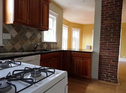 Bright unit with open floor plan. Total rehab in 2006 with Cherry cabinets, granite counters and slate backsplash. Maple floors throughout. Gas cooking and heat. Laundry in the basement. Off street parking. Walk to stores, restaurants and transportation. New roof coming in 2-3 weeks paid by current owner. Just move right in. Nothing to do.
