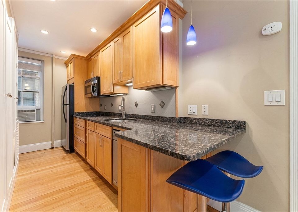 Welcome to the best of city living in this stylish and efficient studio in the heart of Beacon Hill. Boasting a prime location and a list of desirable features with the perfect blend of comfort, convenience, and charm. As you step into this space the front facing living area and bamboo hardwood floors provide great sunlight and warmth creating the perfect ambience after a long day. Designed with efficiency and versatility in mind you will find ample custom built in features by Closets by Design throughout to maximize functionality. This includes a queen size murphy bed, work from home station, wardrobe storage, kitchen & bathroom cabinetry, and even more smart space saving solutions! Equipped with modern conveniences to make daily living more comfortable, this condo boasts the luxury of laundry in unit (and in building), heated bathroom floors, electric fireplace heater, ceiling fan, and custom blinds. Unwind and soak in the city views from the common roof deck.