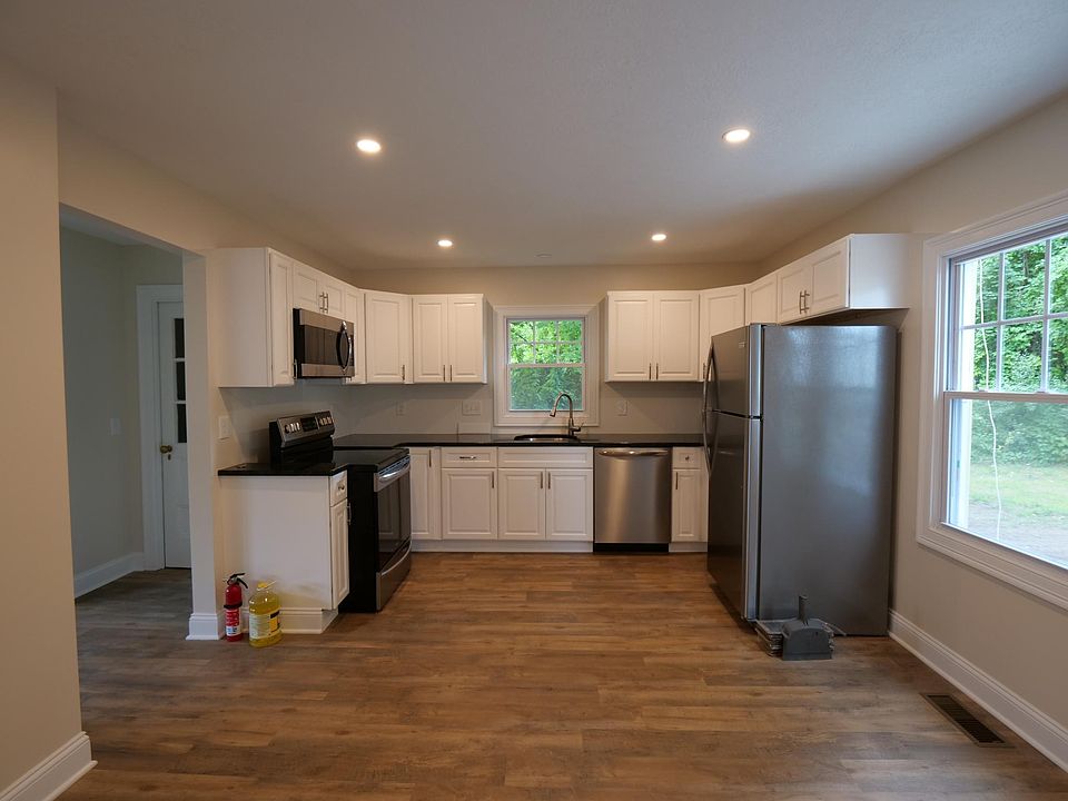 4 unit townhouse in quiet Easthampton neighborhood. Brand new interior renovation including new appliances, granite counters, central A/C, 1 garage space. Washer/dryer hookups in each unit. This building was just redone. Final touches are happening now. Be the first to rent! Renter pays for gas, electric. Owner pays for water/sewer. Owner will provide snow removal from the driveway, but renter is responsible for snow and ice removal from personal walkway and stairs. First, last and security at signing.